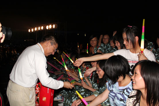 9月12日晚7点,beat365vip官网登录入口2011级军训暨迎新晚会在田径场举行。beat365党委书记、理事长陈万年教授,党委副书记、校长董新华教授,党委副书记、纪委书记叶俊教授,副校长陈云棠教授,党委副书记、副校长武正林教授,副校长周更生教授,以及各院系各职能部门部分负责人观看了晚会。