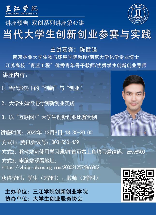 讲座预告丨双创系列讲座第47讲 当代大学生创新创业参赛与实践
